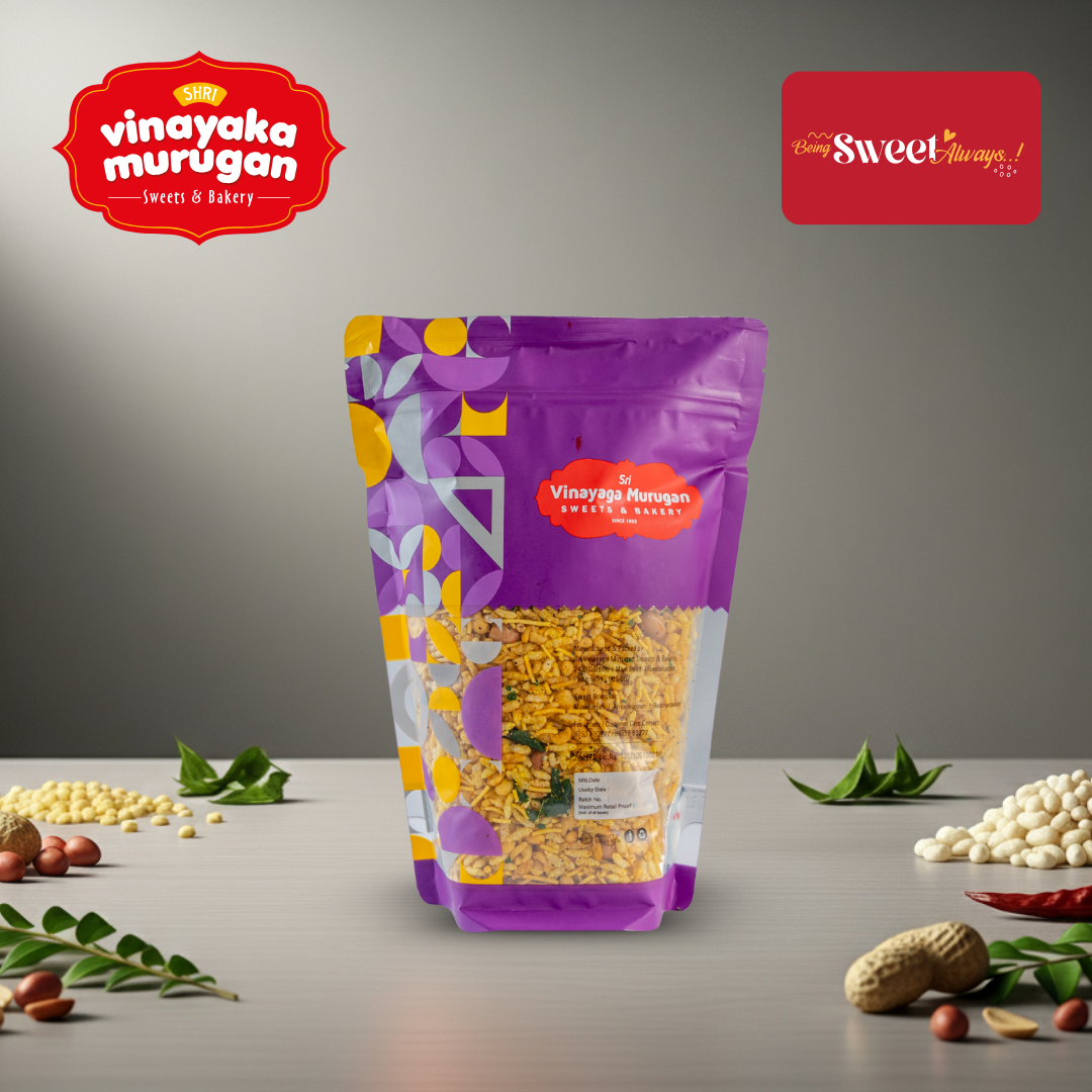 Mixture is a classic Indian savory snack that combines a medley of crunchy ingredients for a burst of flavors in every bite. Made with fried gram flour noodles (sev), roasted peanuts, lentils, and spices, this mixture offers a perfect balance of spiciness, tanginess, and crunch. Its vibrant mix of textures and tastes makes it an all-time favorite snack across India.