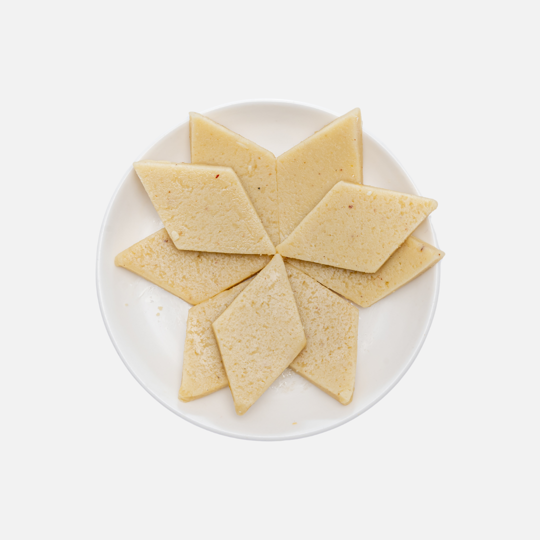 Often decorated with a delicate layer of edible silver leaf, Kaju Katli is a symbol of luxury and celebration. Its mild sweetness and nutty richness make it a timeless favorite during Diwali, weddings, and special occasions, as well as a thoughtful gifting option for loved ones.